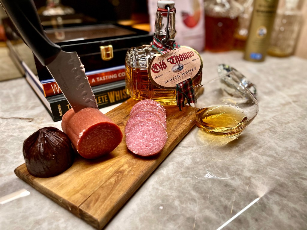 I paired it with whisky sausage, and honestly, that saved the experience. The fat from the sausage smooths out the spice and makes everything feel more balanced. Since the sausage itself is whisky-infused, it doesn’t overpower the drink, and the pairing actually makes sense. This feels like the kind of whisky that wants food next to it.